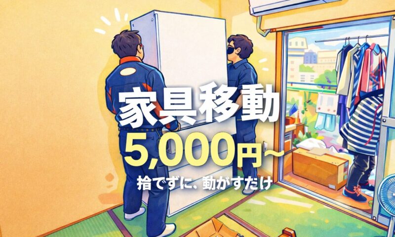 家具移動サービスは 5,000円(税込)〜 対応しています。